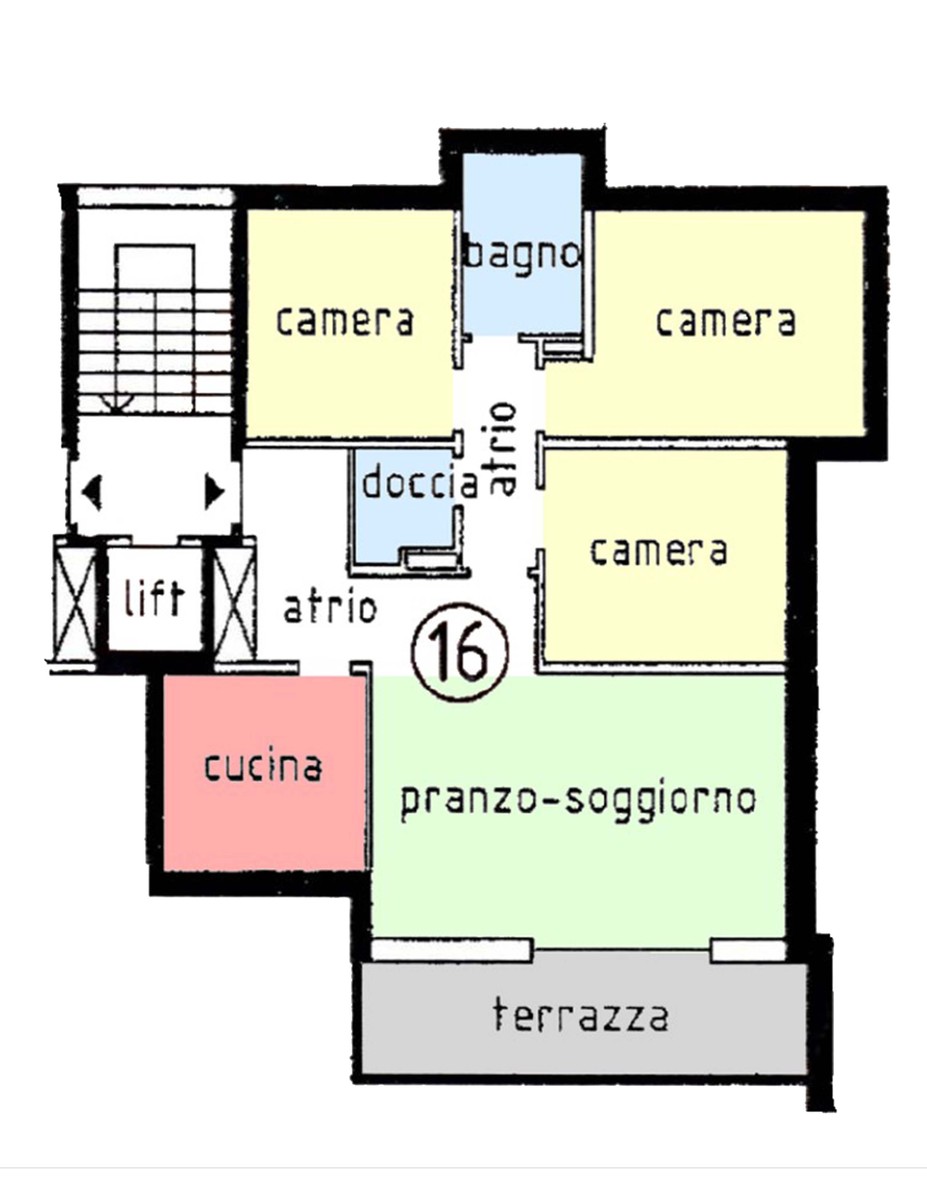 L'appartamento, sito al secondo piano di sei, si collega al pianterreno tramite un comodo lift.