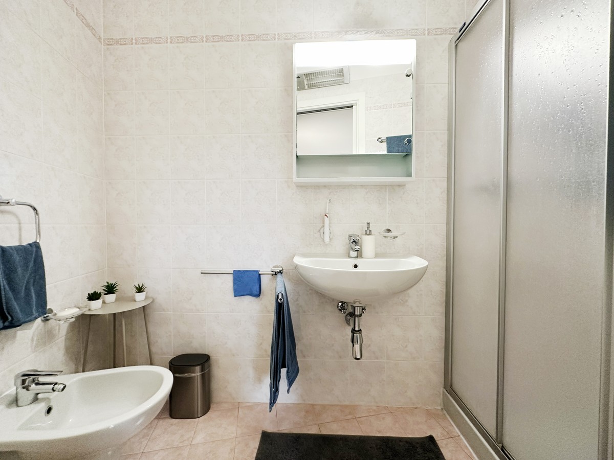 La camera padronale gode del comfort di un bagno privato completo di doccia, creando una zona notte particolarmente riservata e confortevole, ideale per chi desidera uno spazio personale ben definito.