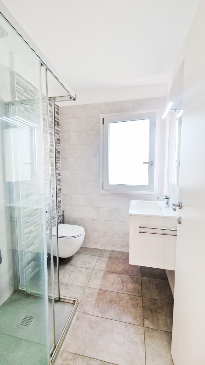 L'appartamento si compone di ingresso, ampia zona giorno open space con soggiorno, zona pranzo, cucina aperta e accesso alla terrazza coperta, di una grande camera matrimoniale, di una spaziosa camera singola, di un bagno finestrato con vasca e di un secondo bagno finestrato con doccia.