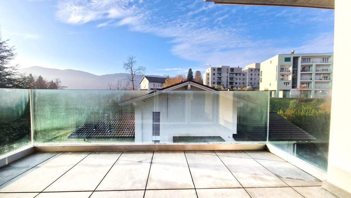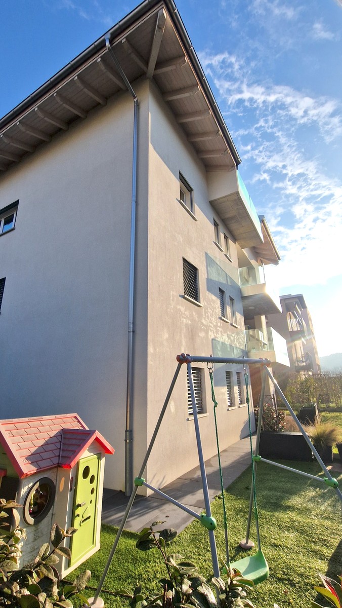 L'appartamento dispone di una piacevole terrazza coperta con affaccio su un giardinetto verde e scorcio sui monti dove è possibile rilassarsi prendendo una boccata d'aria fresca o mangiare comodamente all'aperto ogniqualvolta lo si desidera.