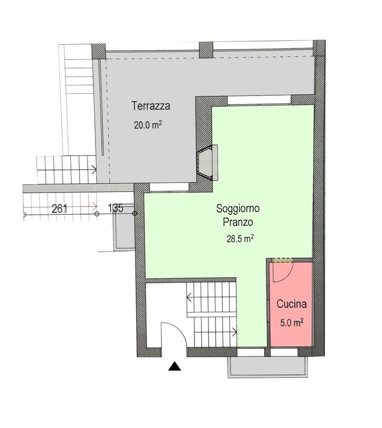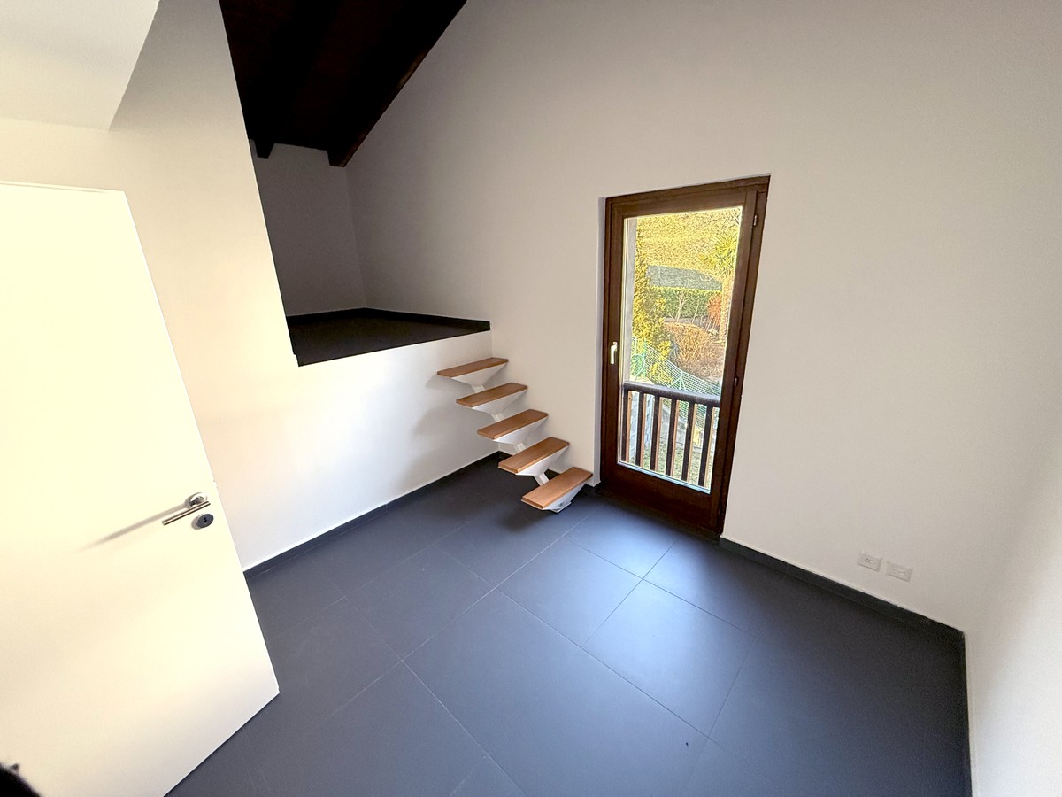 L'immobile si compone al pianterreno della spaziosa zona giorno con camino e vista sui monti, accesso alla terrazza con barbecue e cucina abitabile e di un bagno wc. Al primo piano della camera con armadi a muro, della seconda camera con la nicchia mansardata e di un bagno finestrato con doccia e il piano inferiore, con ingresso indipendente, di un grande locale tecnico con bagno wc trasformabile in lavanderia, di una seconda zona giorno anch'essa con cucina, di un'ulteriore camera matrimoniale e di un moderno bagno finestrato con doccia.