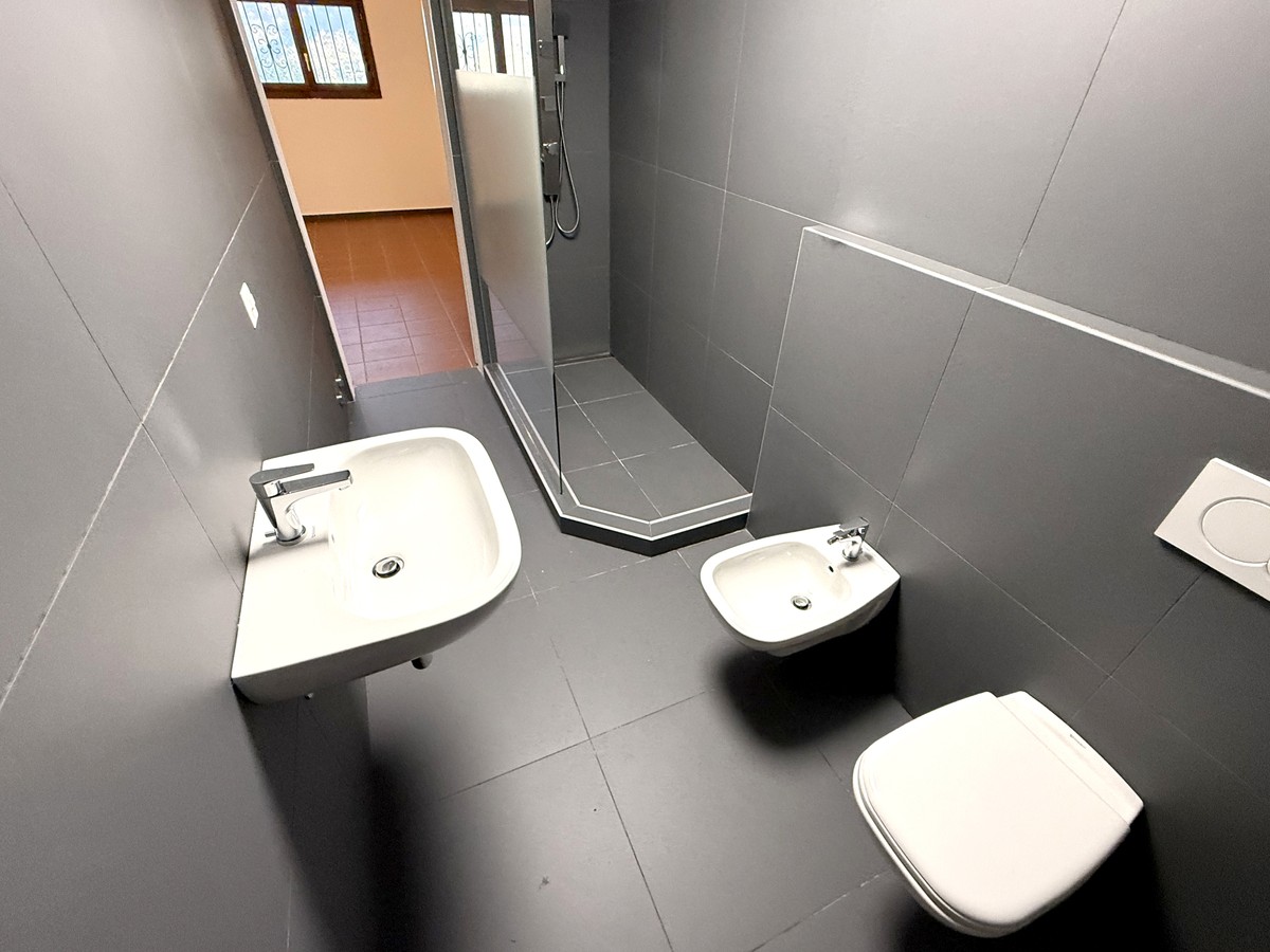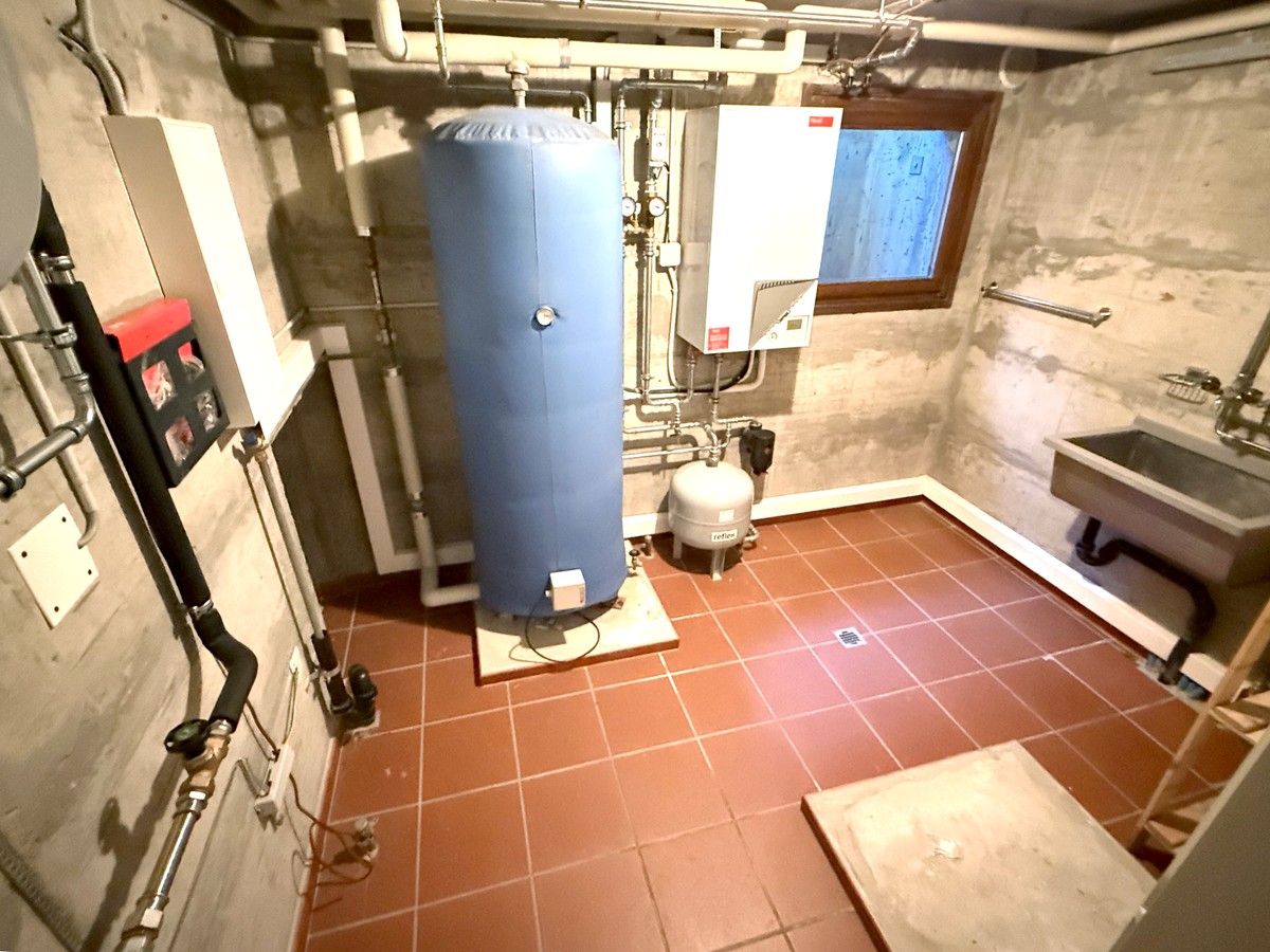 Al piano inferiore, un locale tecnico con bagno di servizio è in grado di ospitare comodamente la lavanderia, assicurando praticità per la gestione del bucato.