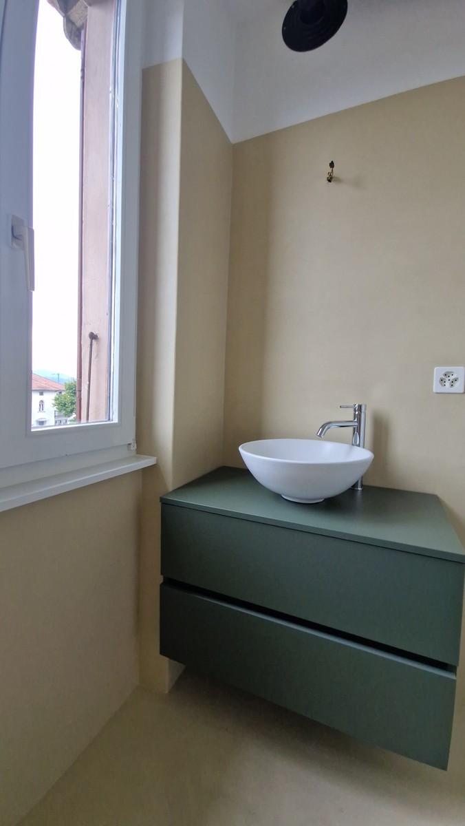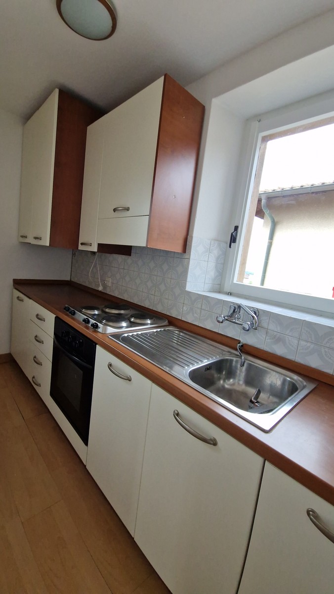 L'appartamento si compone di ingresso con armadio a muro, angolo cottura collegato a zona living, di una camera matrimoniale, di un grande locale utilizzabile a piacimento come seconda stanza o soggiorno e di un bagno finestrato con doccia in stile moderno.