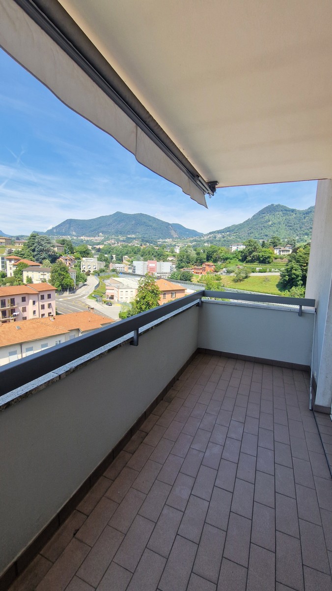 L'appartamento dispone di un piacevole ampio balcone coperto nel quale è possibile rilassarsi serenamente all'aria aperta ammirando una piacevole vista aperta sulla natura, sui monti e sui caseggiati circostanti, favorita dall'ubicazione al settimo piano panoramico.