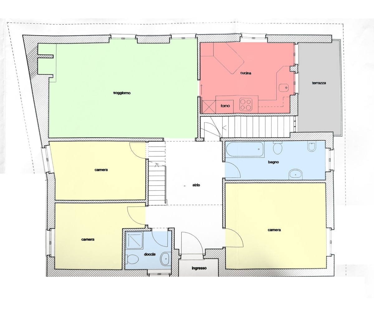 L'abitazione, costruita negli anni '80 e ha ricevuto una completa opera di ristrutturazione interna che ha coinvolto l'interezza della superficie al di fuori dei bagni. Nel 2015 sono anche stati rinnovati i pavimenti con un nuovo grès porcellanato.