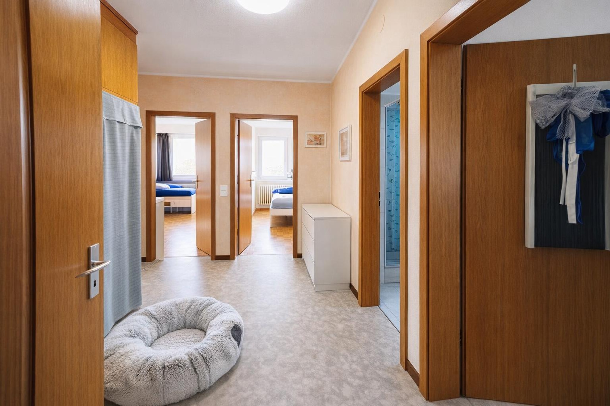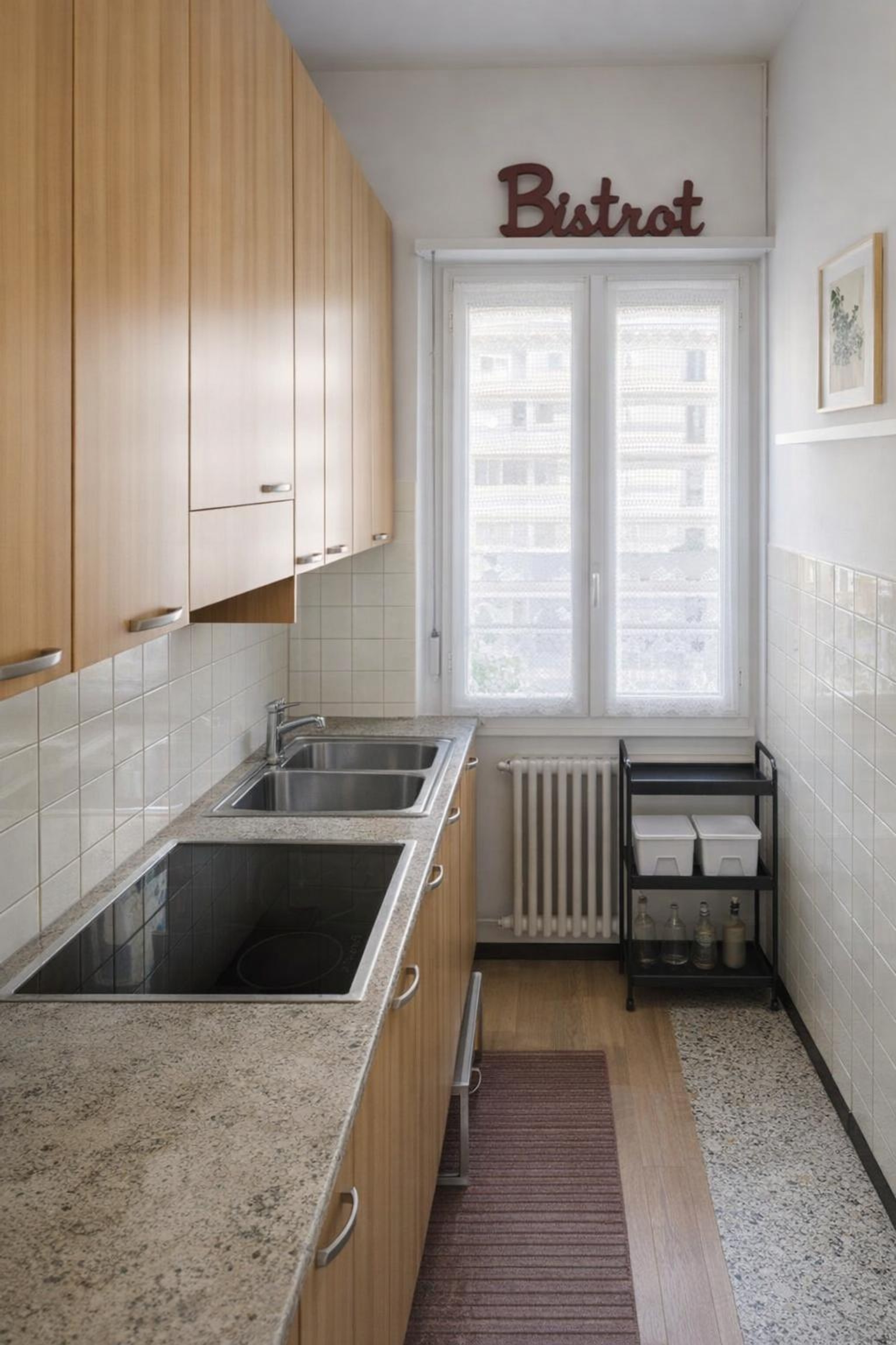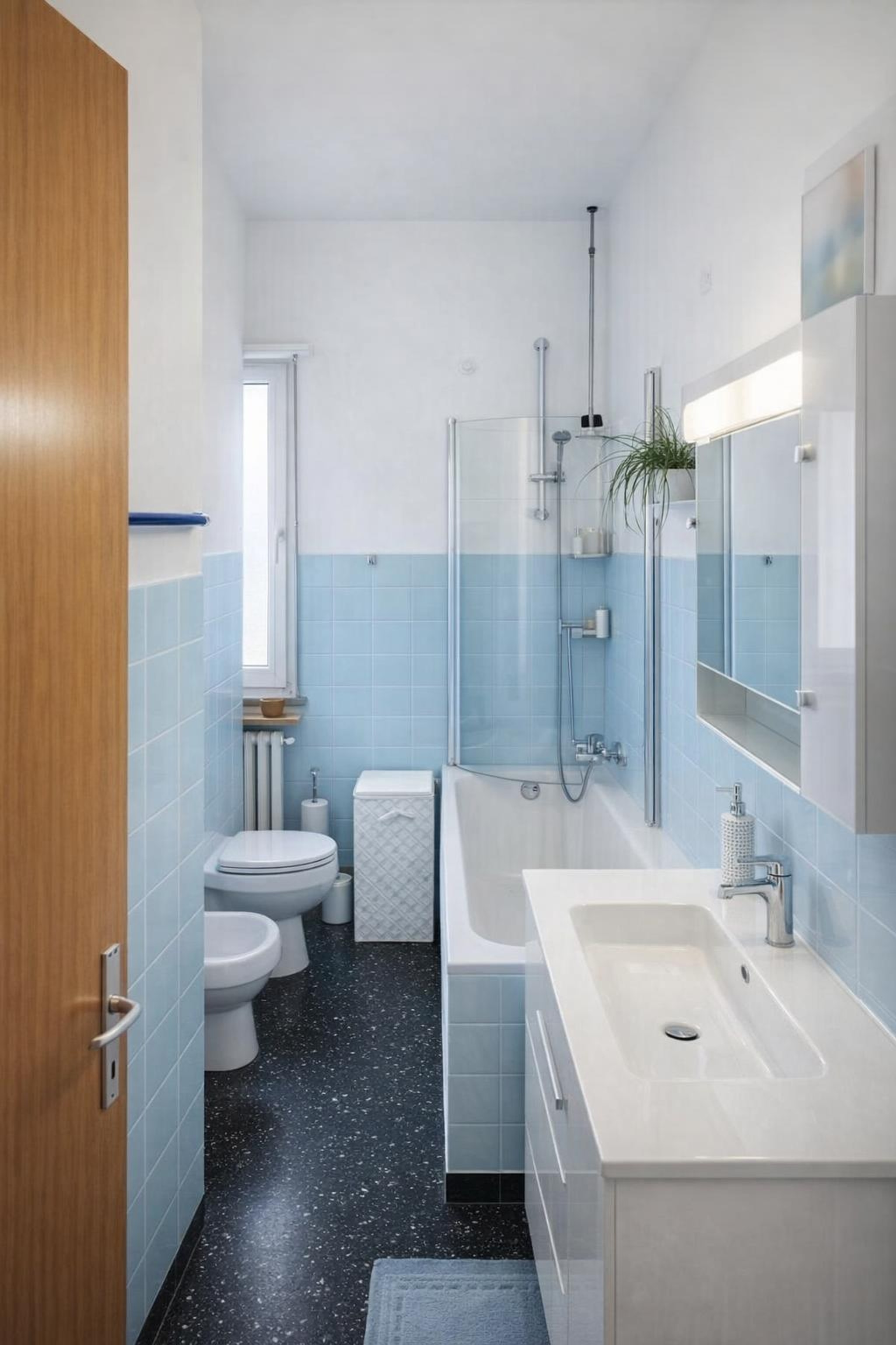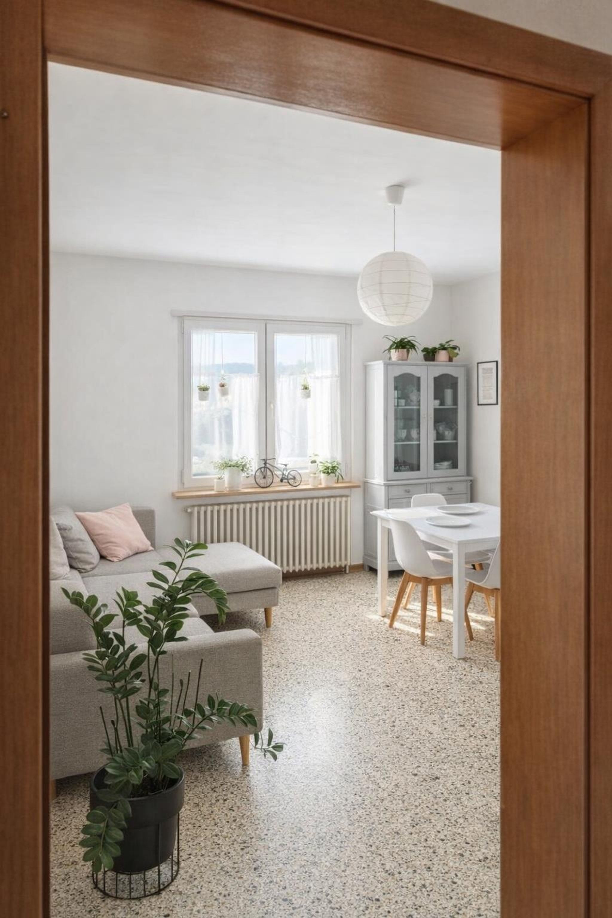 L'appartamento al piano rialzato si compone di ingresso, cucina con tinello, di ben tre camere doppie e di un bagno finestrato con vasca.