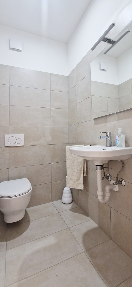 Oltre ai tre locali, l'unità dispone anche di un bagno wc.
